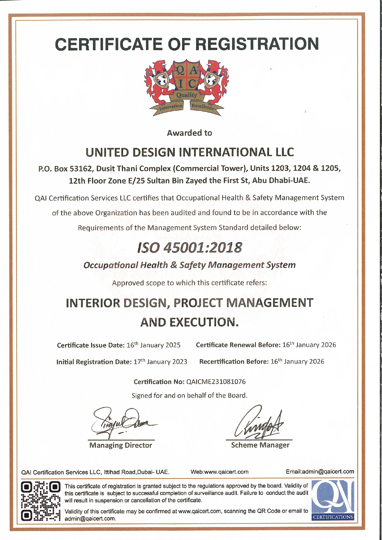UDI was established in 2002. UDI has extensive skills and experience in designing stunning, opulent palaces and offices for the rulers of Abu Dhabi, and is one of the most prestigious and respected firms in the UAE capital. UDI offers superior quality, luxurious and value-engineered interiors. UDI houses a team of multi-disciplined Interior Designers with international experiences and specialist skills in interior concept, spatial design, furniture, graphics, project management, supervision and value-engineering. Their approach is practical and incorporate the latest technology and global trends.